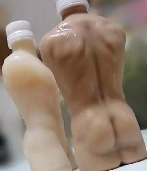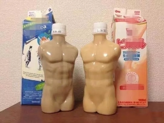 早在2014年,日本饮企推出的某款饮料瓶身,以肌肉发达的男性躯体为主要造型,瓶中的淡黄色奶茶酷似人体肤色,从冰箱取出后还会有水珠凝结其上,让人“浮想联翩”↓↓↓