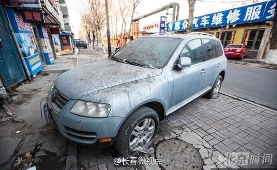 新文化讯(实习记者 赵娇娆) 2月17日下午3点,博主"长春微视点"发布了一条微博称,"一辆价值百万的大众SUV停在路边,车身落满灰尘,牌照脱落,四个轮胎都已经泄气,许多部位都已生锈,车钥匙还在钥匙孔上面插着。据附近居民称,这辆车在附近洗车场清洗过,然后就停在这里了,一直没有人来开走。"文字下方还附带现场照片。从图片中可以看到,此车横向停在人行道上,周围都是商铺,车身落满灰尘,风挡玻璃和发动机盖上有大量褐色泥土。