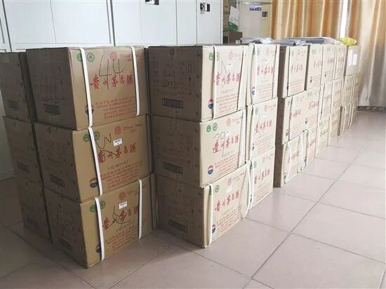 茂名曾仕权黑社会性质组织案中,警方缴获的涉案物品,茅台酒摆满了整面墙 (警方供图)