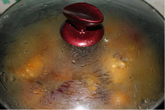 7.这时候倒入我们刚才煮鸡腿的肉汤。