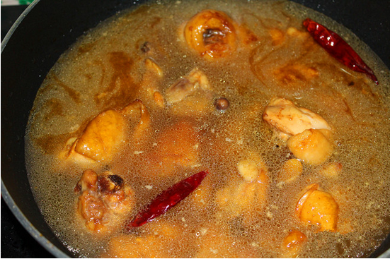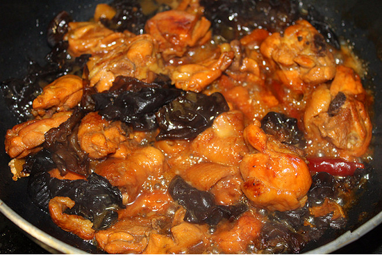 鸡腿木耳20克 冰糖14粒 盐1小勺 生抽8克 料酒10克 姜3片 干辣椒2个 鸡精1克