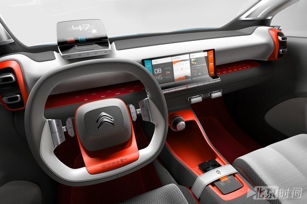 车内,C-Aircross概念车采用极简主义的布局,布置很少的物理按键和旋钮,通过12英寸大触摸曲面屏可控制大部分的车辆的功能。更重要的是,大型平视显示屏取代了方向盘后面的仪表盘,颠覆传统,富有科技感。另外,支持手机无线充电、车载wifi、网上社交共享等。